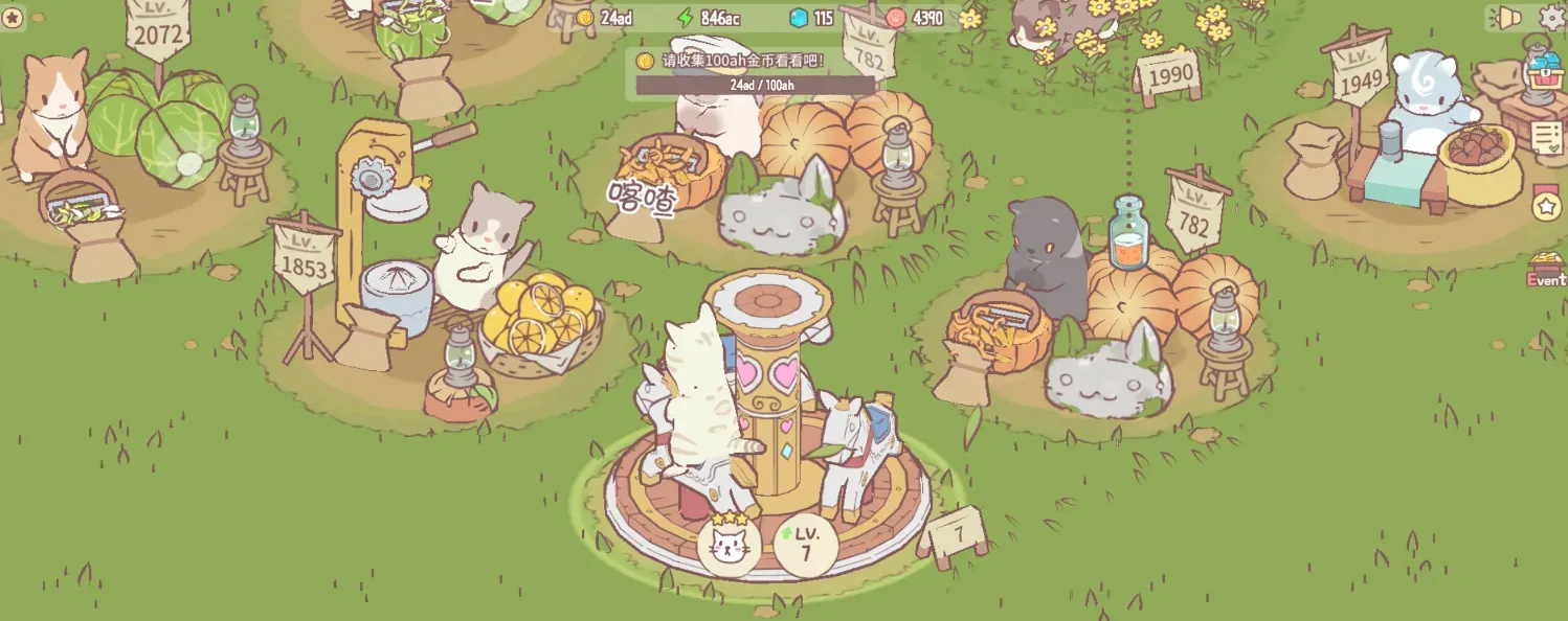 背景介绍:铺展在眼前的,是一片大大的森林,在此与各种各样的小猫相遇。无论晴天雨天四季更替,随时随地压迫猫咪制作美食积攒财富,不断解锁美食摊位与游乐设施,奴役世界各地的猫咪。