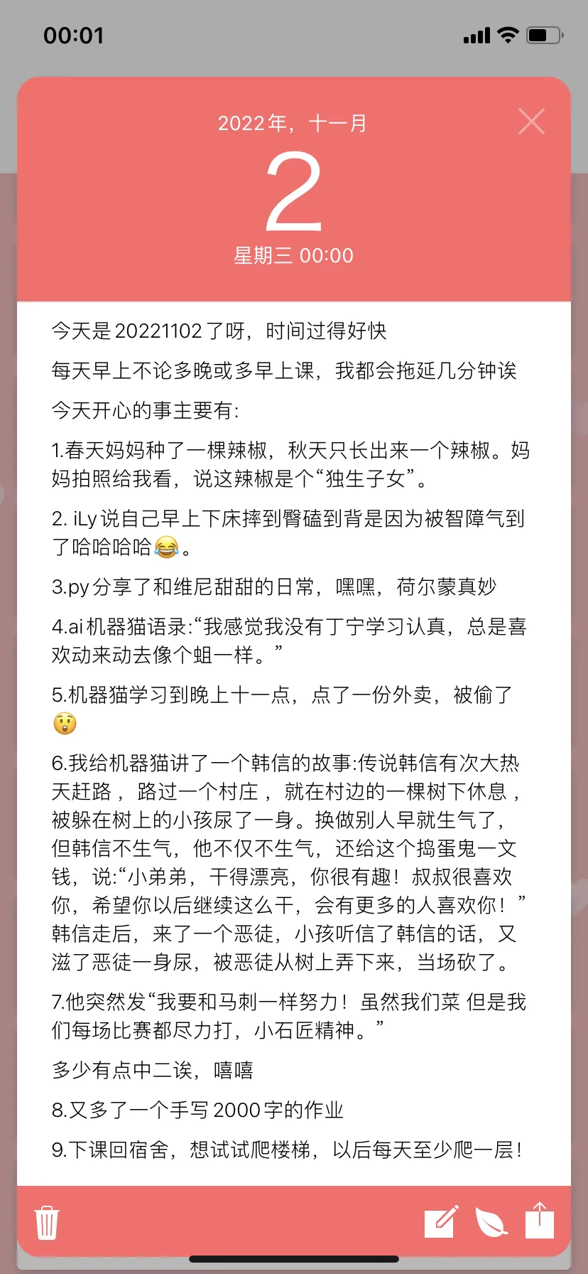 翻出了前两年的日记,看到还是有怦然心动的感觉。(嗯我比较自恋,觉得自己写的东西很有趣。)